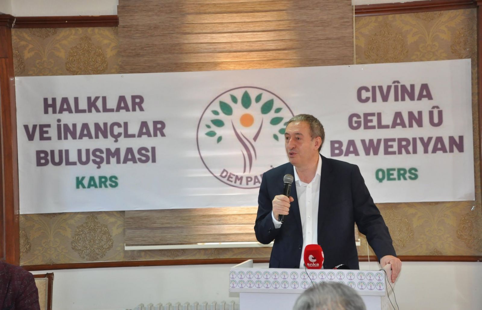 DEM Parti Genel Başkanı Tuncer Bakırhan, partisinin düzenlediği "Halklar ve İnançlar Buluşması" programına katılmak üzere memleketi Kars’a geldi.