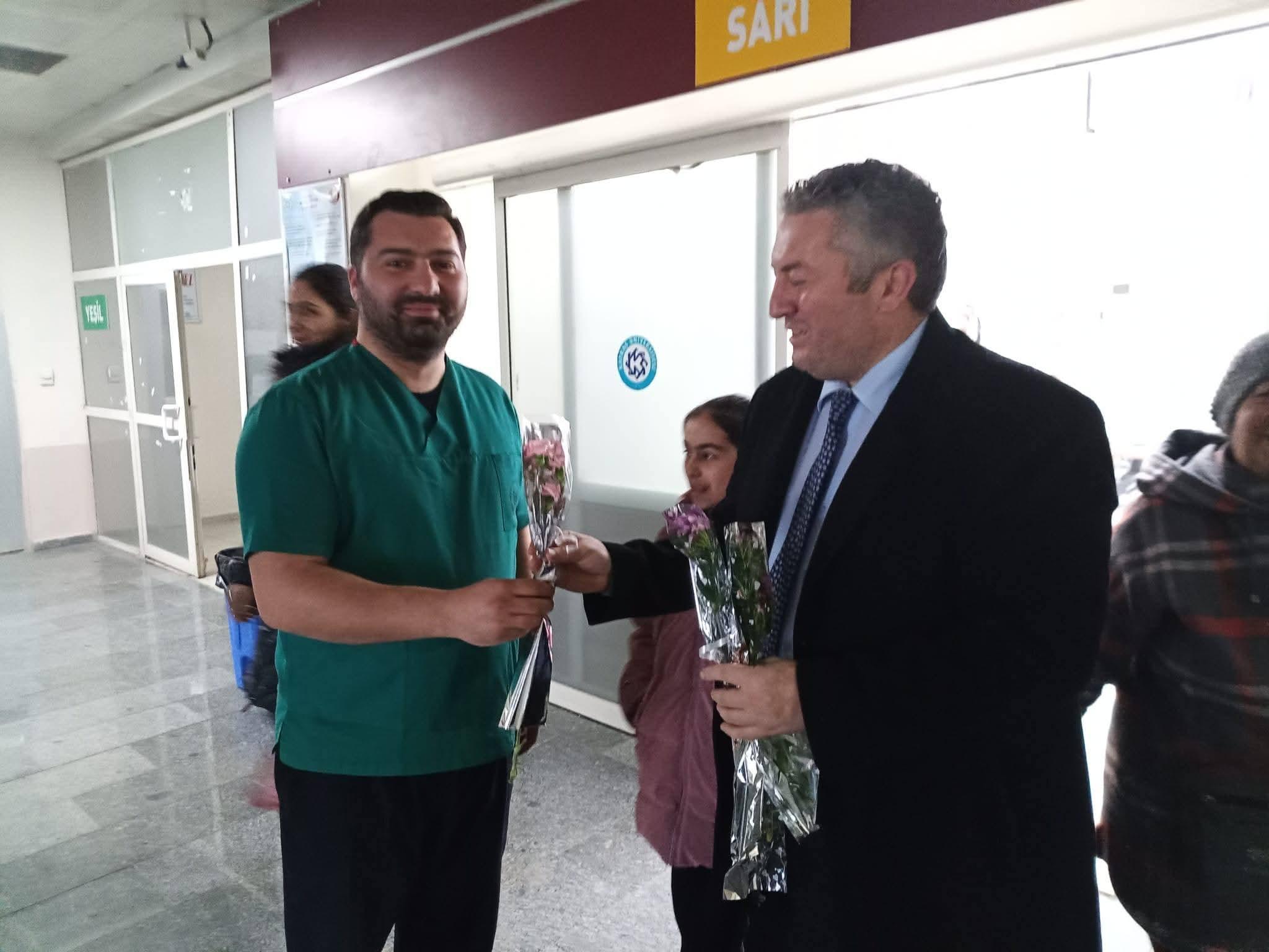 İYİ Parti Kars İl Başkanı Ömer Baran Yeşilbağ, parti yönetimiyle birlikte 14 Mart Tıp Bayramı dolayısıyla Kars Devlet Hastanesi ve Kafkas Üniversitesi'ni ziyaret ederek sağlık çalışanlarının gününü kutladı.